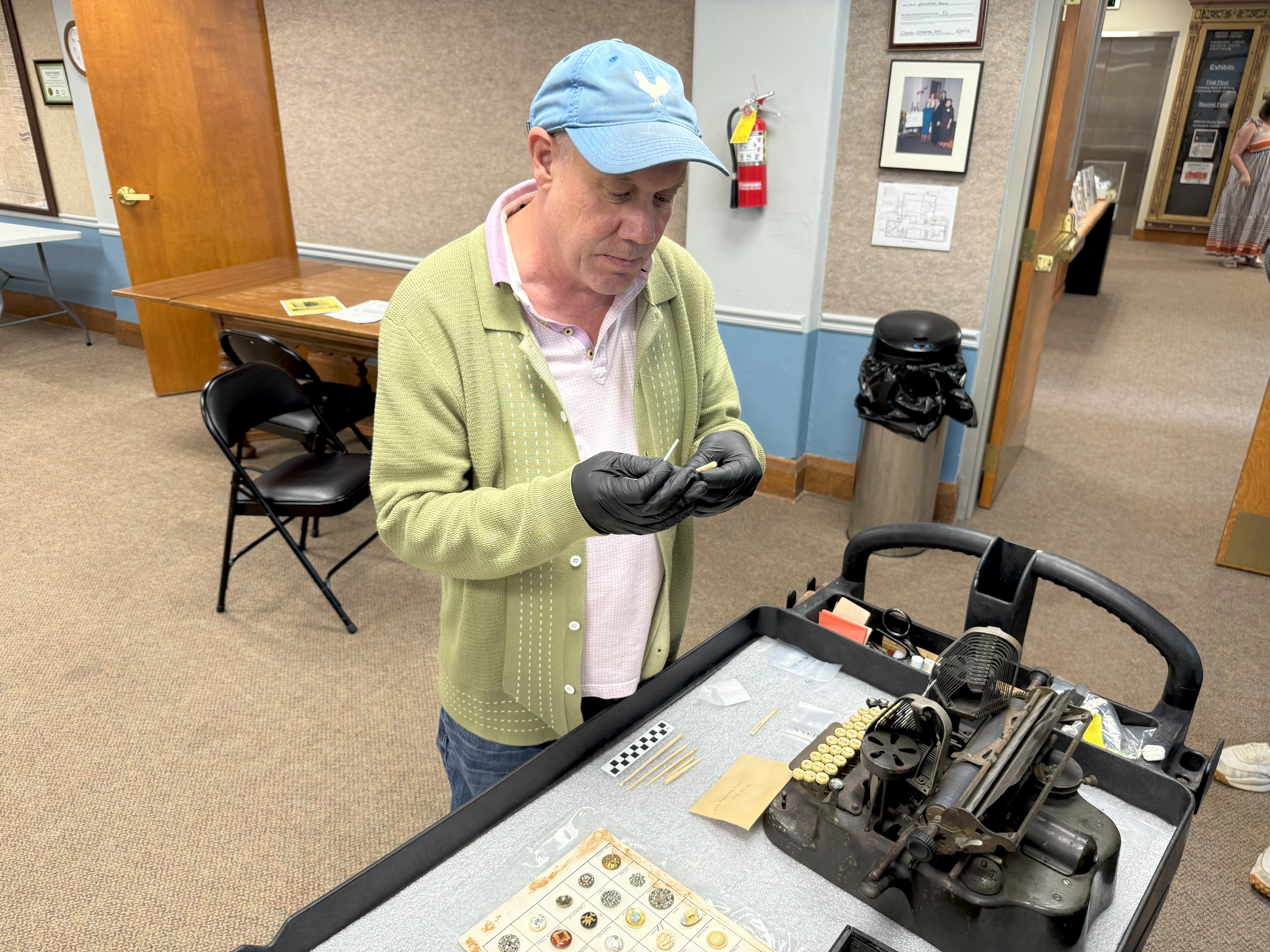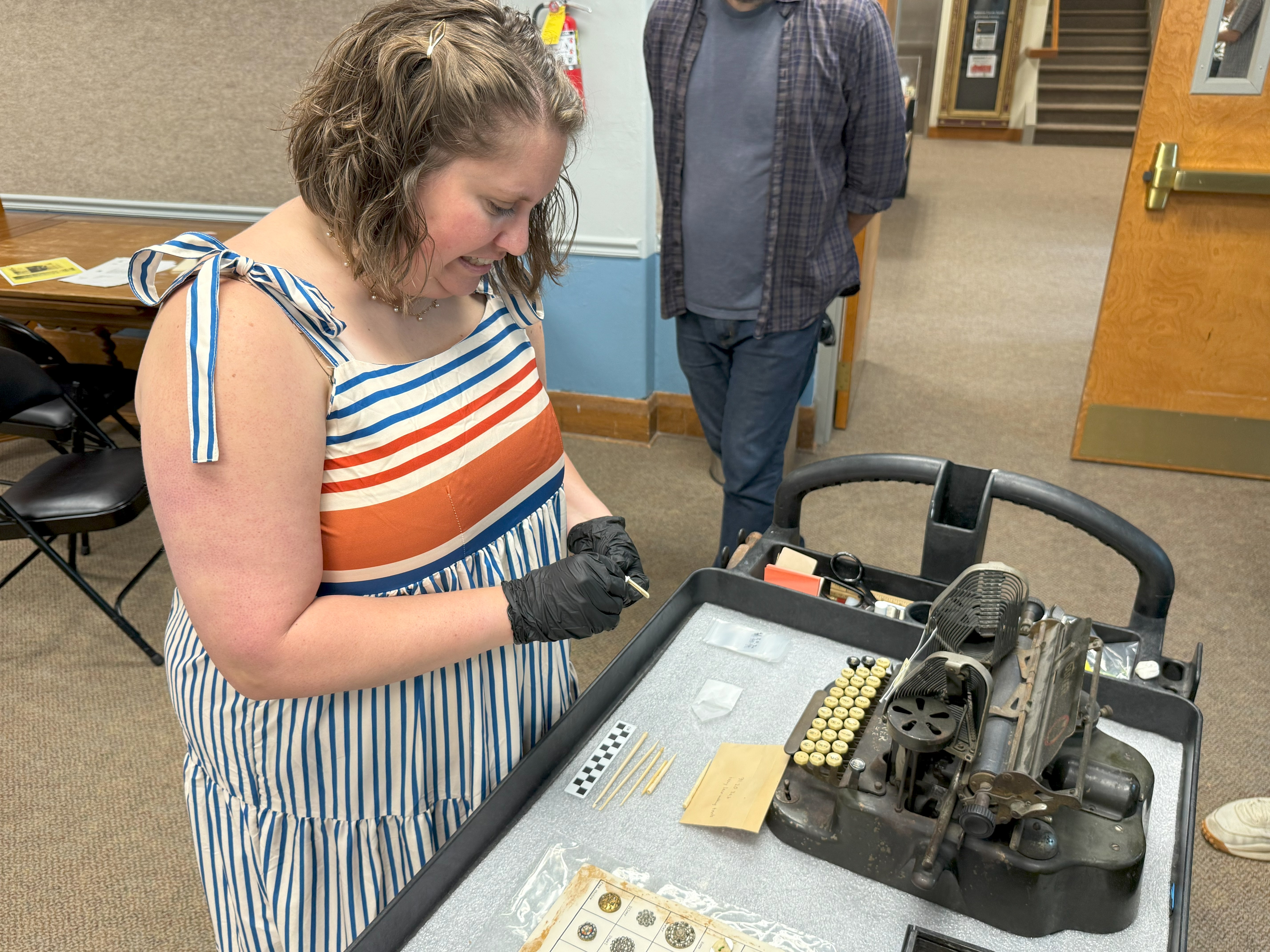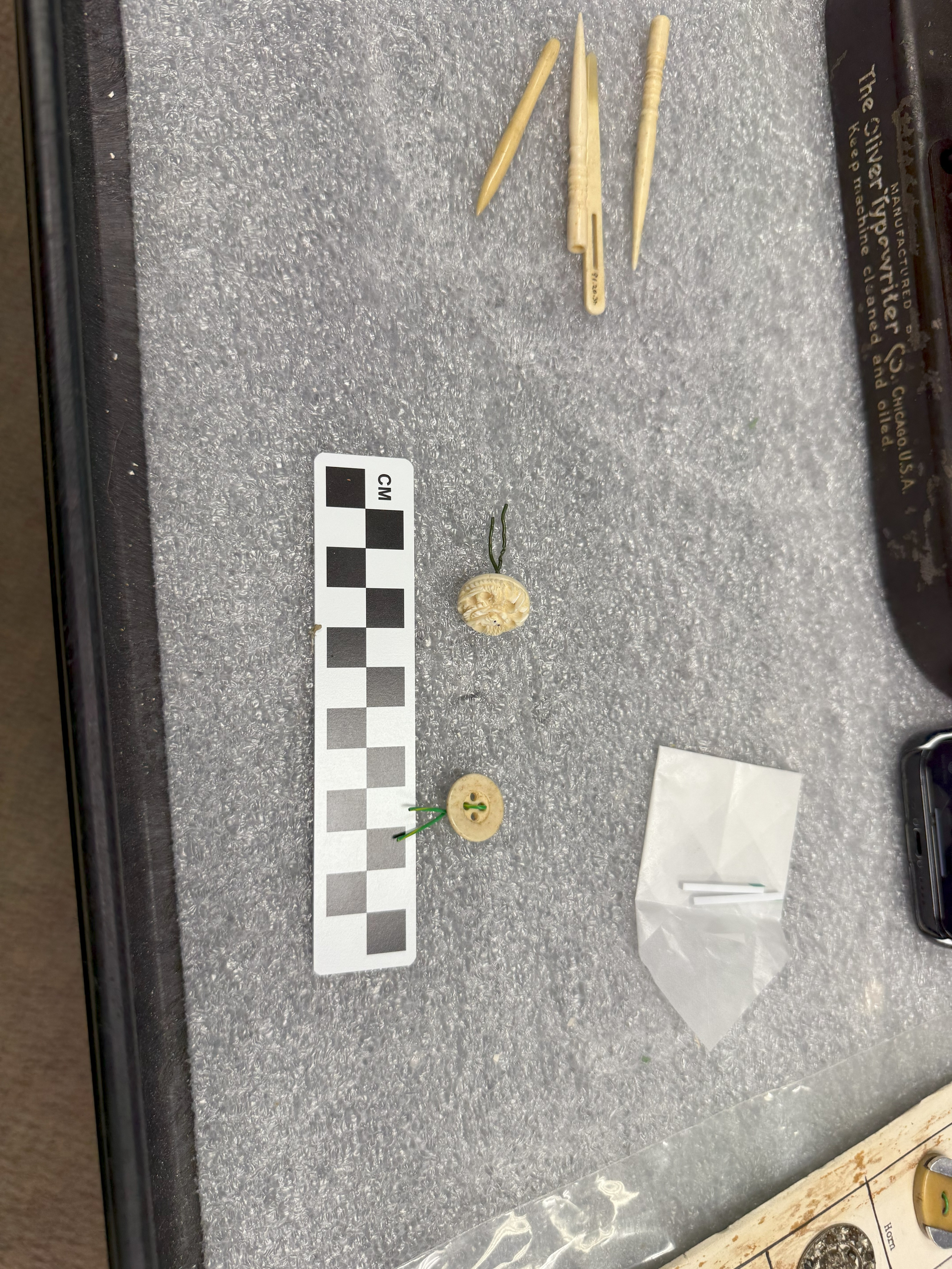 We were privileged to work with the team at the Monroe County History Center to perform ZooMS testing on a number of items, including an old lace kit and an organ from the 1800s! The pictures below show team members using tiny sticks, much like matches, to collect surface residues from the items. We then send these samples to our partners at labs across the country to analyze the results.