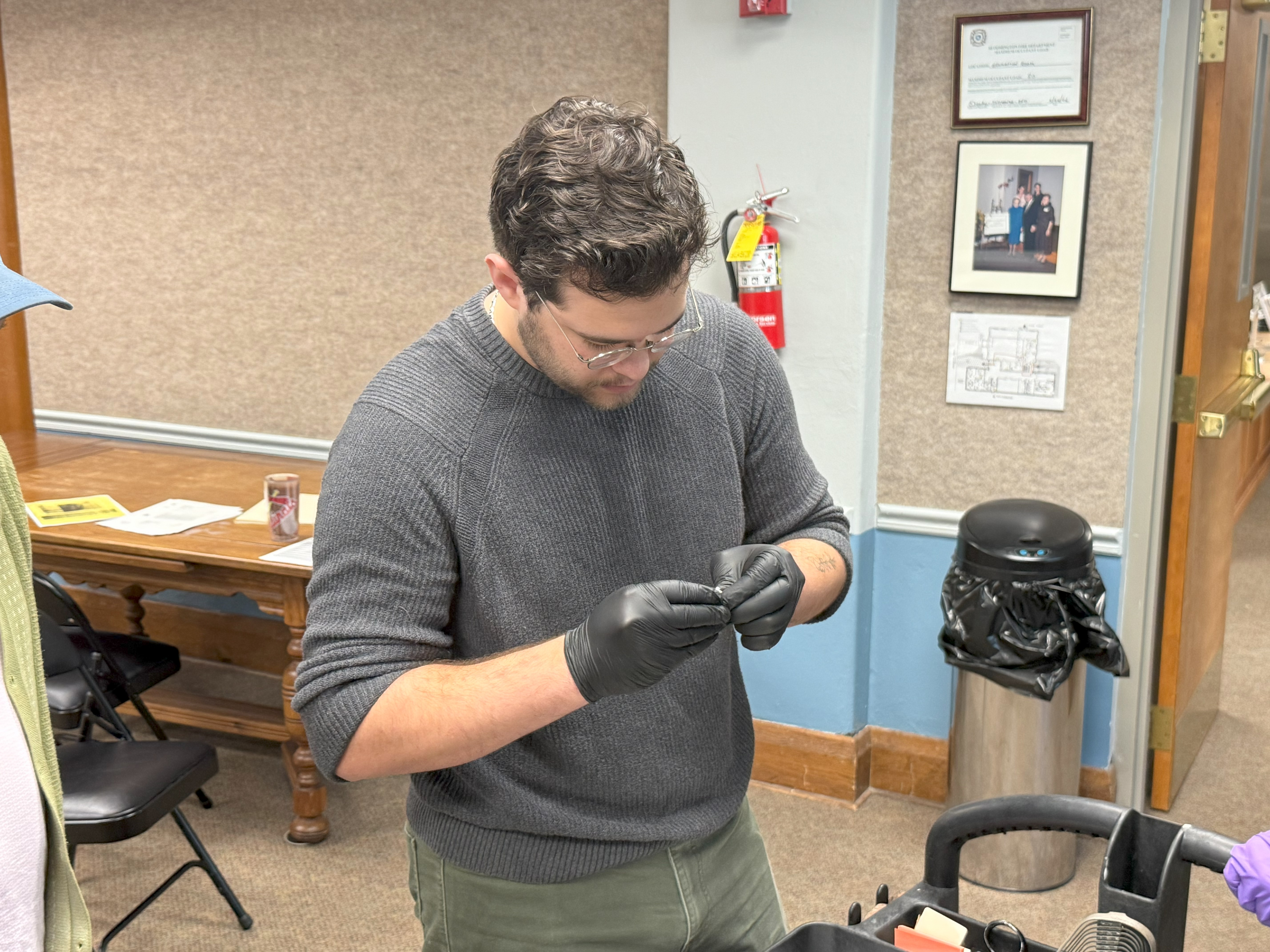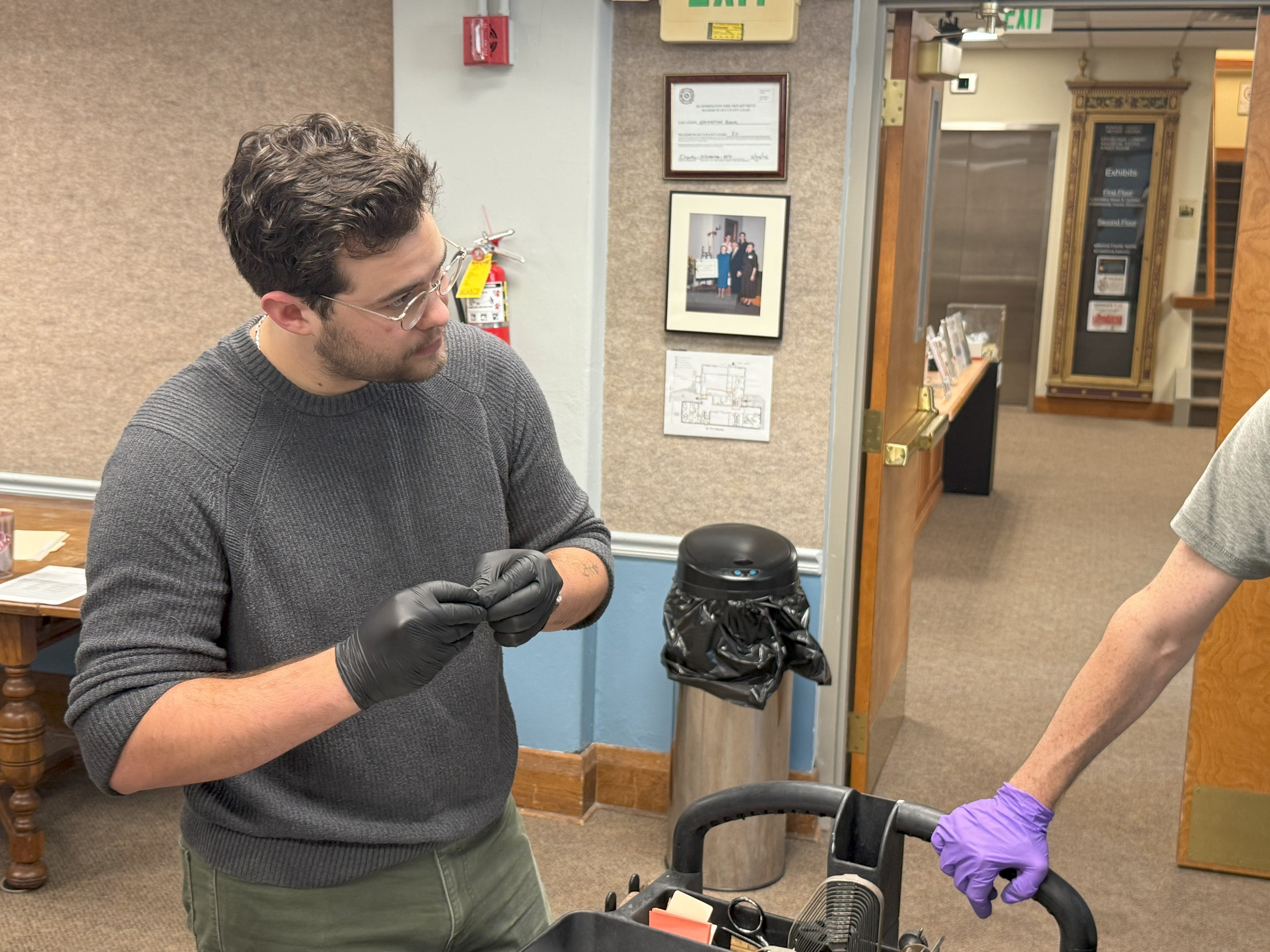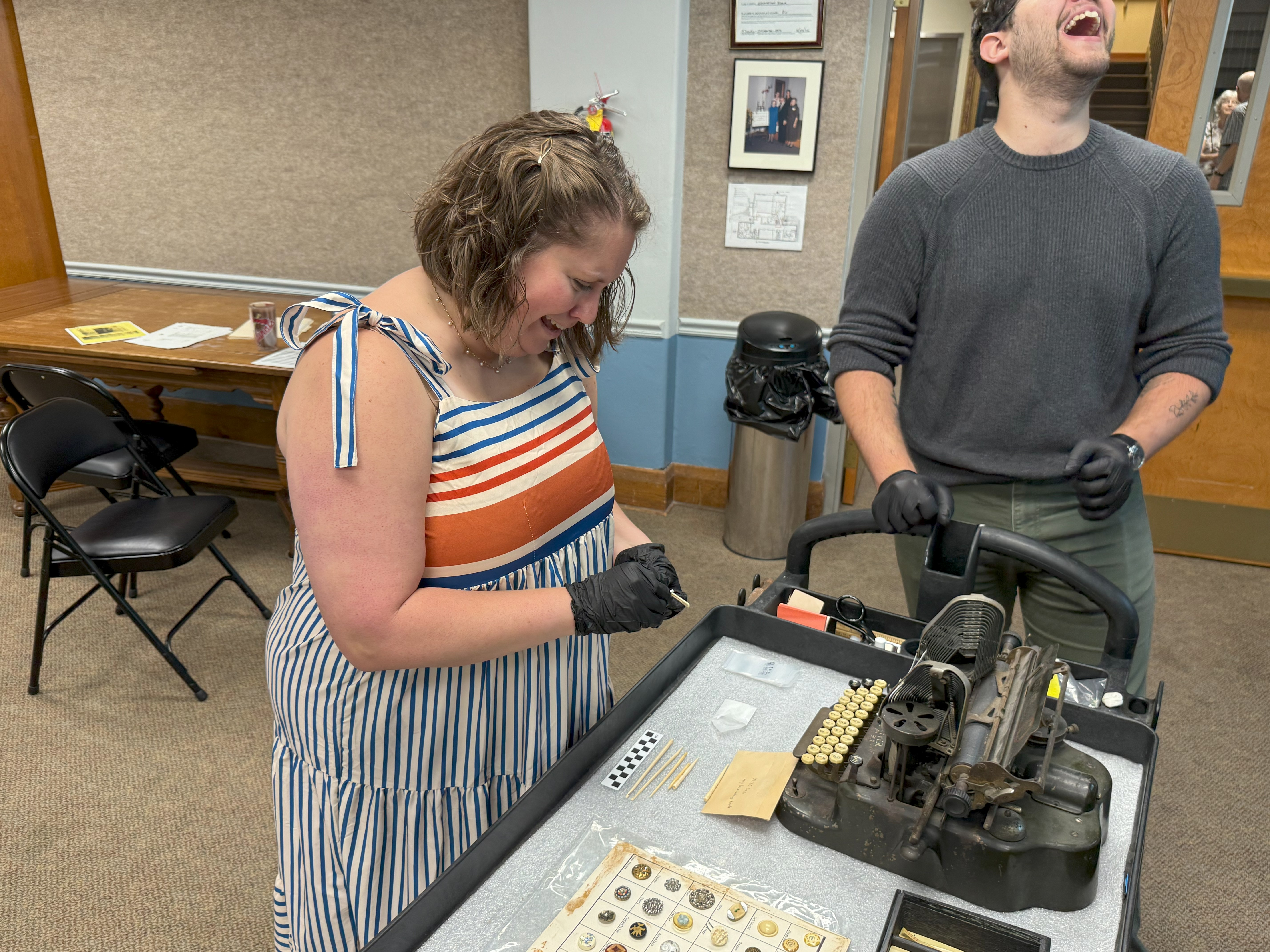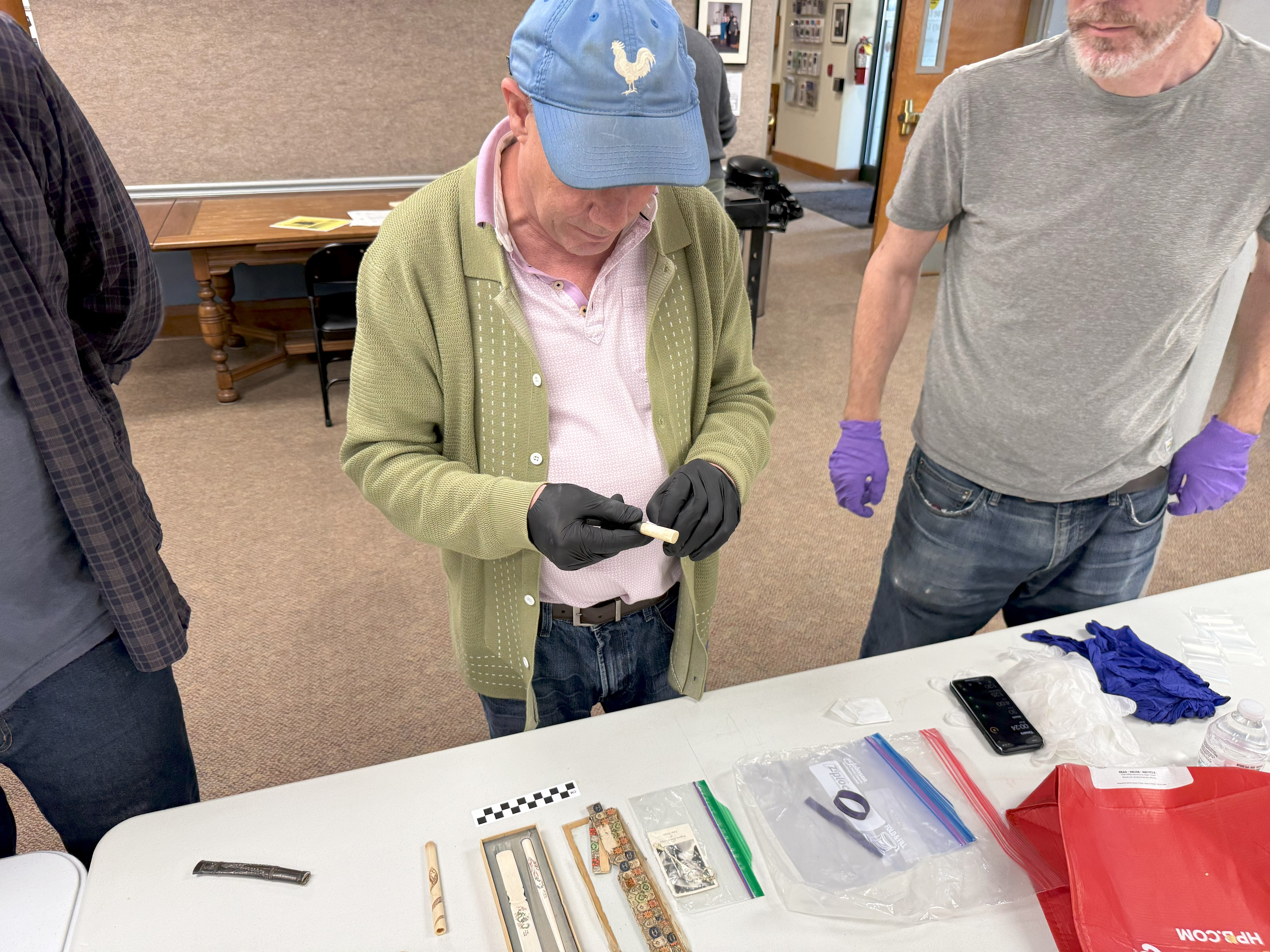 We were privileged to work with the team at the Monroe County History Center to perform ZooMS testing on a number of items, including an old lace kit and an organ from the 1800s! The pictures below show team members using tiny sticks, much like matches, to collect surface residues from the items. We then send these samples to our partners at labs across the country to analyze the results.